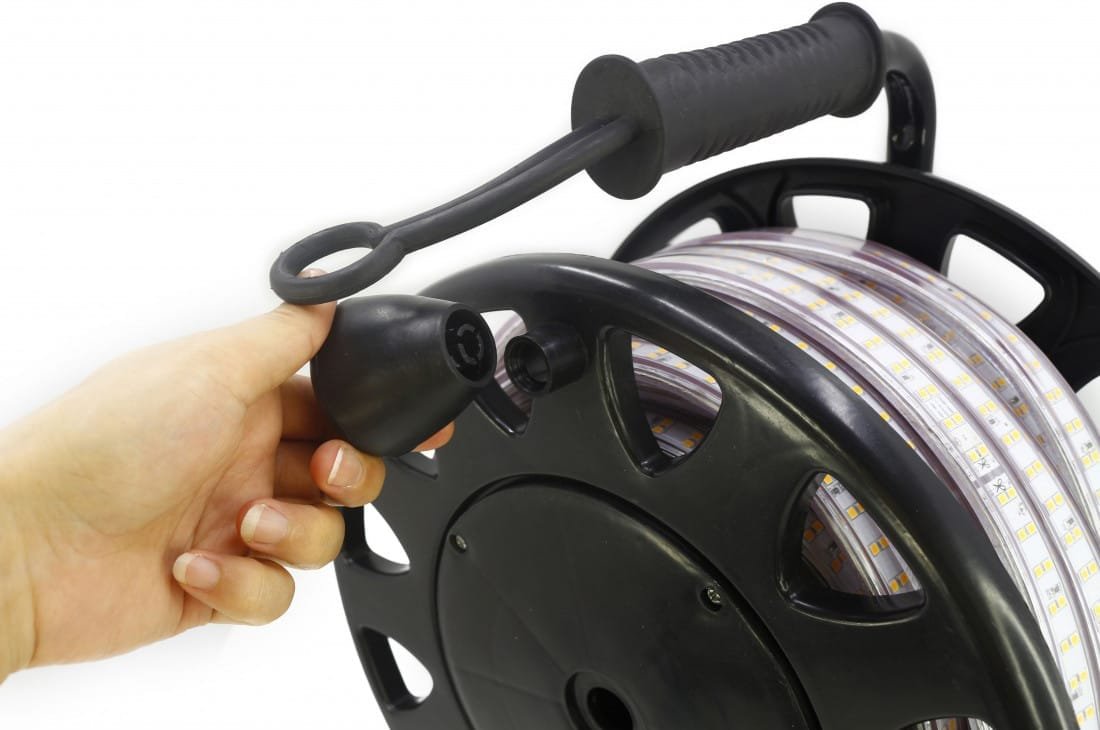 Un des atouts majeurs du ruban LED RibbON est sa facilité d’utilisation. Grâce à son enrouleur intégré, le ruban peut être enroulé et déroulé sans effort, facilitant ainsi son transport et son installation. Cet aspect pratique est particulièrement utile pour les projets temporaires ou les installations qui nécessitent des déplacements fréquents. Le design ergonomique de l’enrouleur permet de ranger le ruban de manière ordonnée, évitant tout enchevêtrement et garantissant une mise en place rapide.
